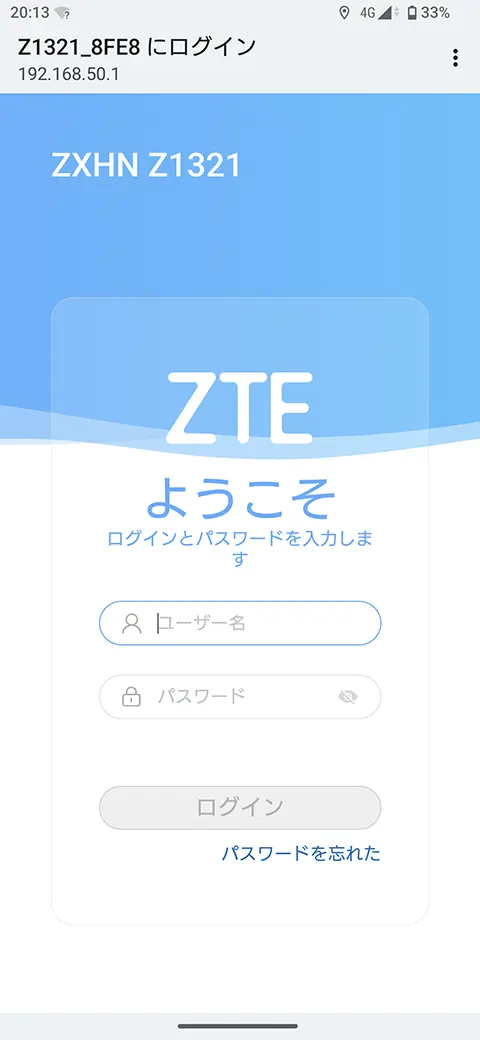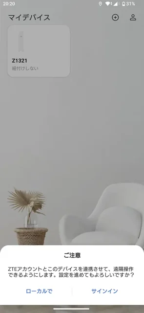 マイデバイスとして表示されるようになりましたが「紐づけされてない」と出るので、アカウントとの紐づけが必要になります。正直、このあたりはマニュアルの説明不足でよくわからないまま進めていました。ZTEのユーザーID&パスワードやルーターに書かれた管理者IDとパスワードなど、どれを入力するのか、いまいちよくわかりませんでした。このあたりは今後の改善を期待したいところ。
