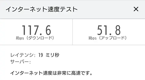 メッシュ無しでSora単体の場合は24.8MbpsだったのがKumoを設置しメッシュ構築した場合は117.6Mbpsまで改善されました。メッシュなしでもやれないことはないのですが、あったほうが格段に良くなることは間違いないです。