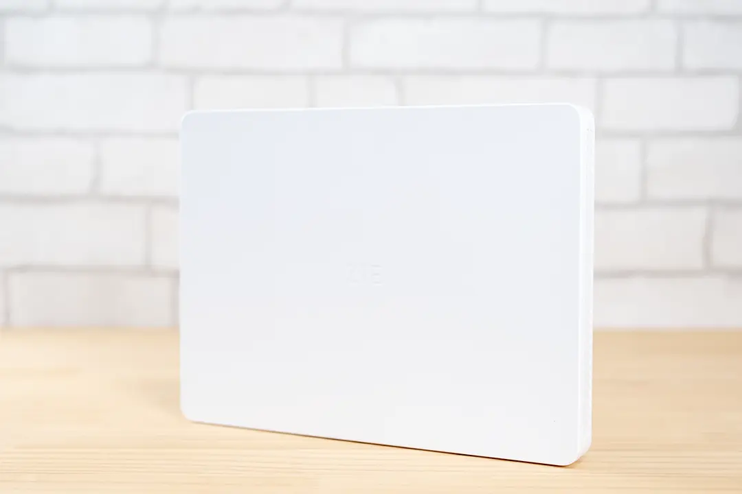 Kumoの見た目もシンプルでスッキリとしています。中央にZTEロゴがありますが、写真だとほとんど見えないですね。奥行き21mmしかないのでけっこう薄いです。