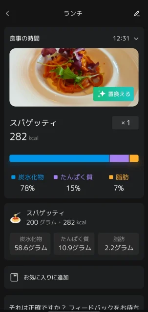 写真を読み込ませればカロリー計算などまで自動で行ってくれる食事記録機能を搭載。Zeppアプリ1つで管理できます。