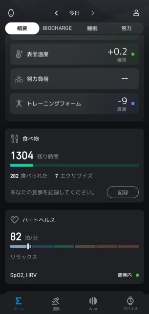 自分のエネルギーが今どれくらいなのかを表す指標で、トレーニングの時間やタイミングをはかることができます。私のようにゴリゴリトレーニングをしない人でも、変化を見ると体調と連動していたりして面白いです。