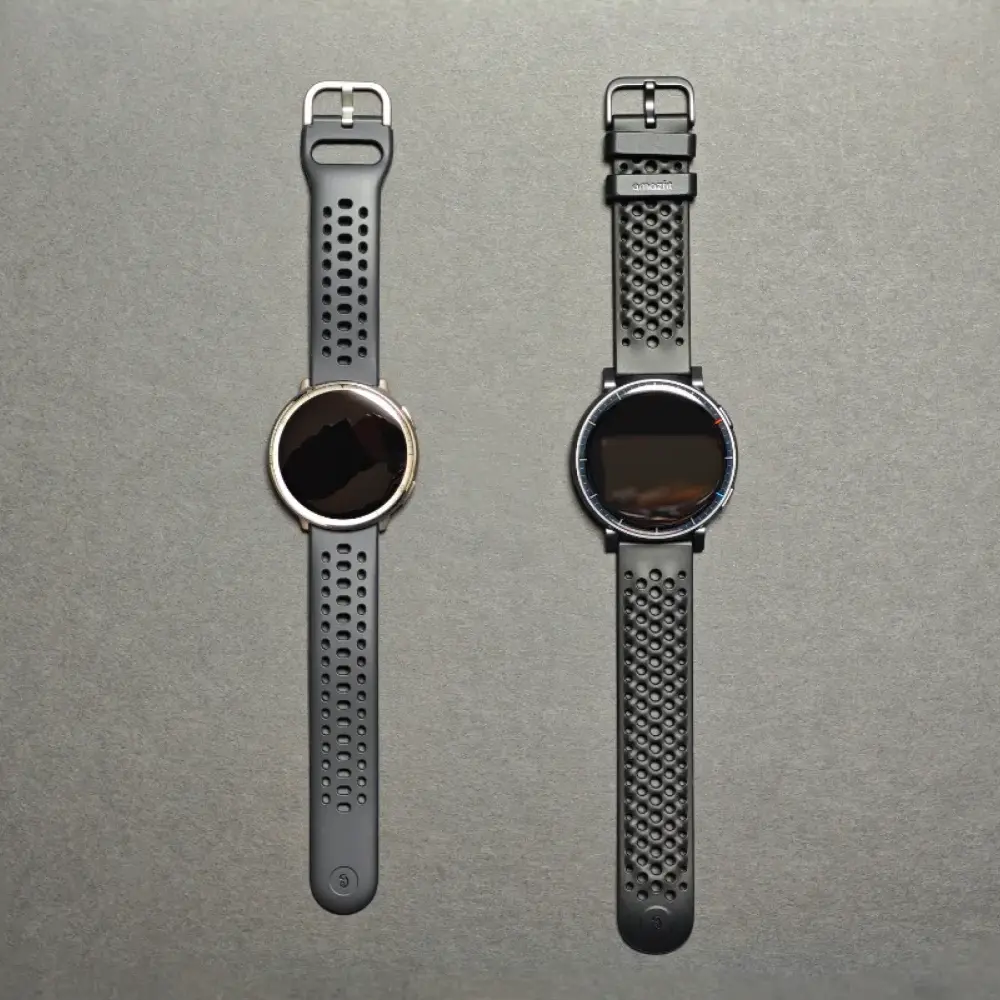 Active Maxはナンバリングモデルではないのですが、比較のためAmazfit Active 2と並べてみました。明らかにActive Maxの方がディスプレイが大きく、全体的にも大きくなっていますね。それもそのはず、バンドサイズも20 mmから22 mmになっています。
