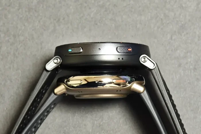 ボディの質感は価格相応にあるのですが、バッテリーが大容量化されたことによって厚みはかなり増しています。数値上はActive 2比で2mm程度しか増えていないのですが、実際に装着すると数値以上に厚みを感じます。