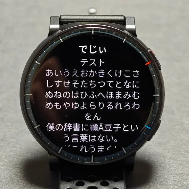 ディスプレイはピーク輝度3,000nitsで、以前レビューしたAmazfit Active 2より明るいものになっています。サイズも大型化したことで視認性も良くなっています。