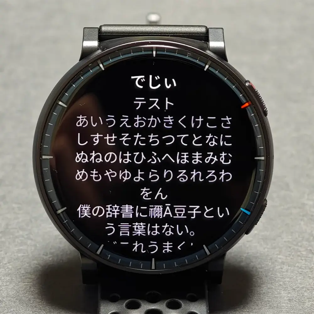 通知画面では横に全角11文字程度文字を表示できます。フォントはいわゆる中華フォントで、一部うまく表示されない文字もありますが、常用されるような漢字は特に問題なく、ゴシック体なので極端に見づらいことはありませんでした。