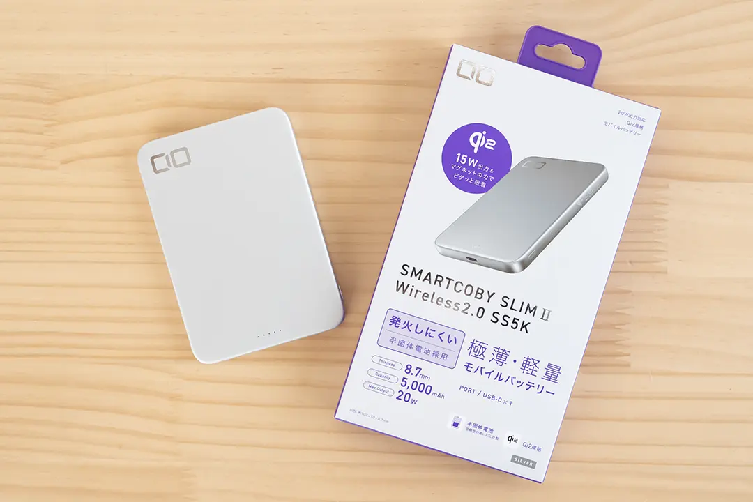 CIOより、半固体系電池を採用したモバイルバッテリー「SMARTCOBY SLIM II Wireless 2.0 SS5K」をレビュー用に提供していただきました。