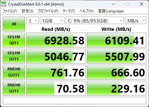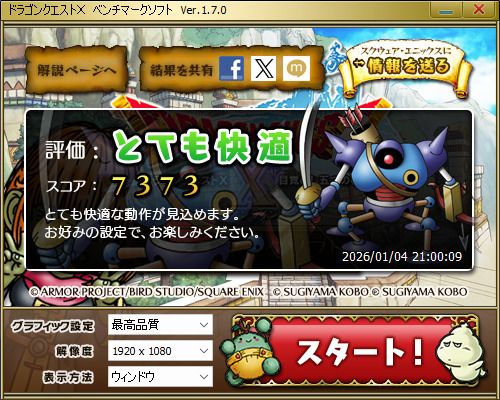 ベンチマークソフトでPCの性能を数値化してみました。使用したソフトはFF14ベンチ、DQ10ベンチ、Cinebench 2026、Crystaldisk Markです。結果は下記の通り。