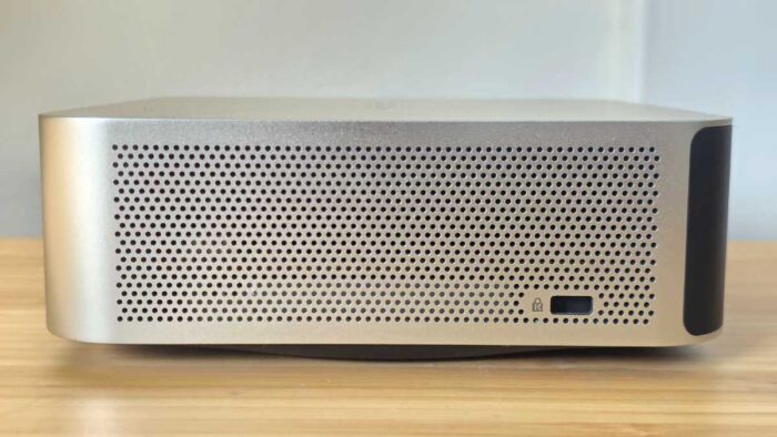 本体カラーはシルバー調で高級感があります。昨今では様々なミニPCが登場し、チープな物も散見されますが本機は外装にも注力する1台です。