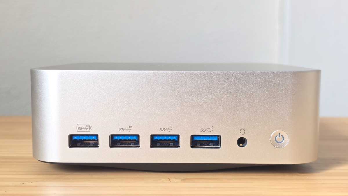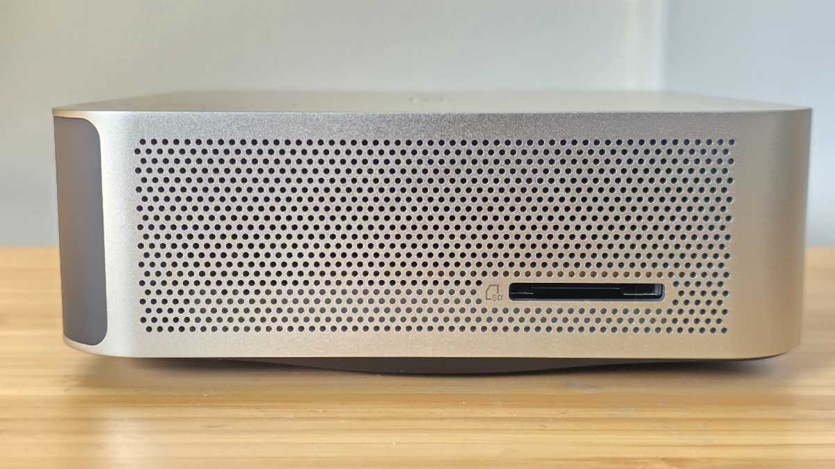 本体カラーはシルバー調で高級感があります。昨今では様々なミニPCが登場し、チープな物も散見されますが本機は外装にも注力する1台です。
