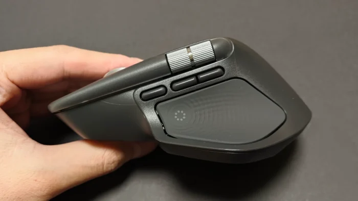 ボタン類に関しても、MX Master 3Sと同じ静音スイッチを引き継いでおり、非常に静かで押しやすいです。これ以上改善できるのかというレベルです。