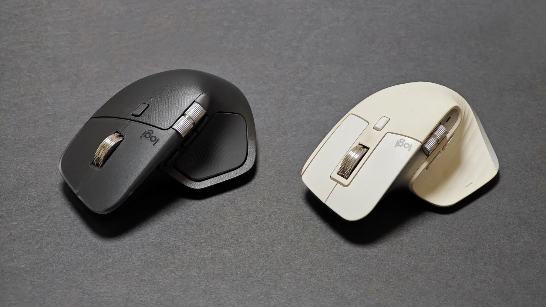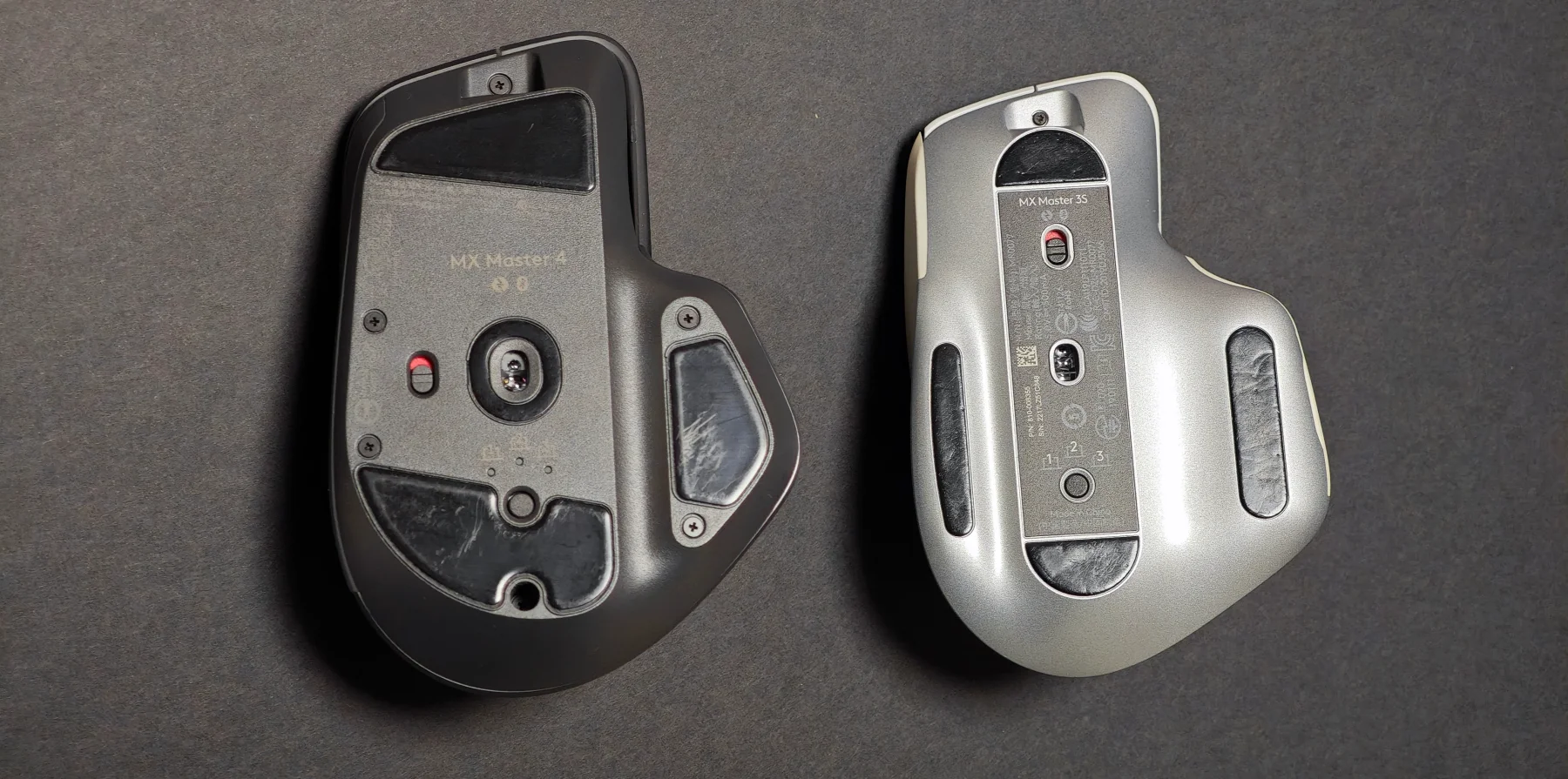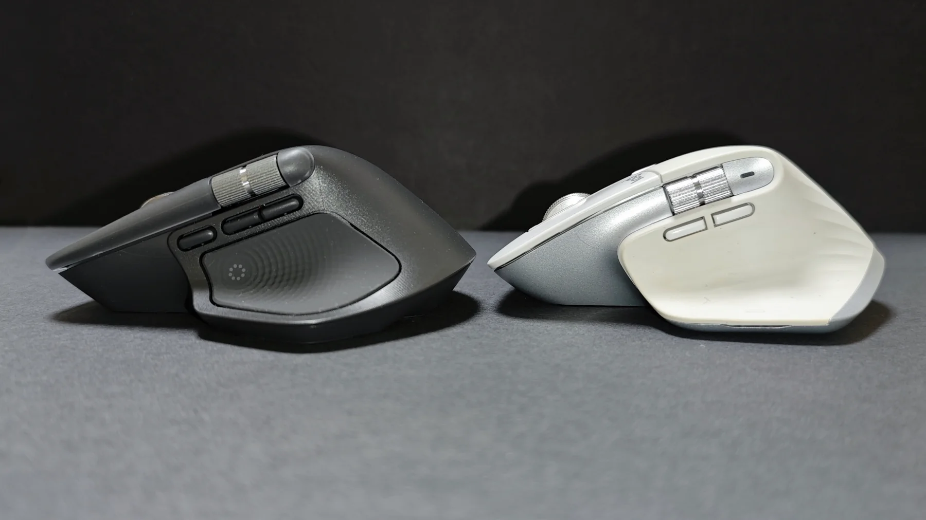 MX Master 4と3Sを並べてみました。3Sは黄ばんできています…