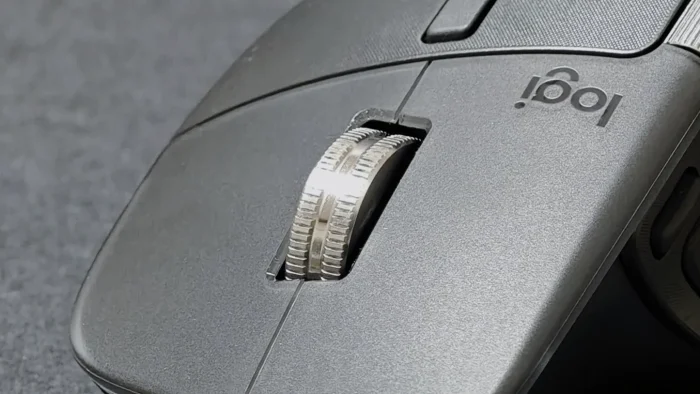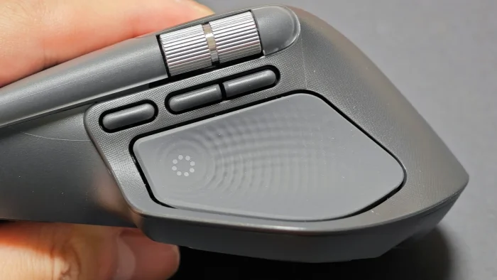 MX Masterシリーズではおなじみとなっている電磁式スクロールホイール。もちろんMX Master 4でも健在で、爽快なスクロールが可能です。このためにMX Masterシリーズを使っているといっても過言ではありません。