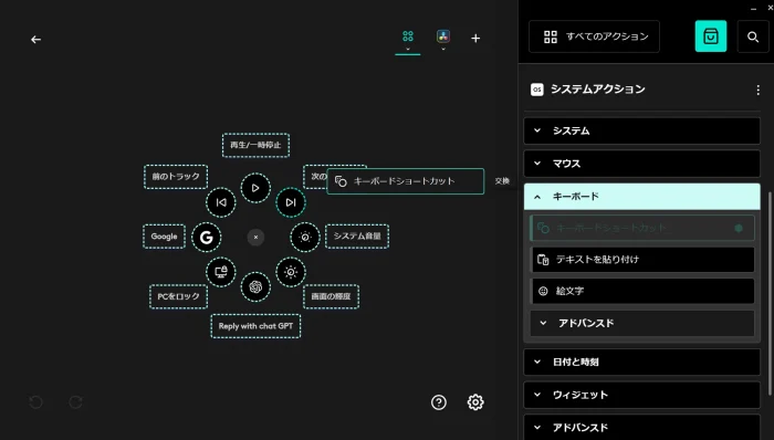 Actions Ringは自分好みにイジって使っていますが、確かに便利です。これまでのMX Master 3/3SにもActions Ringの機能は存在しましたが、ハプティックフィードバックが無かった上、ボタンを押す方向がちょっと押しづらい方向だったのです。