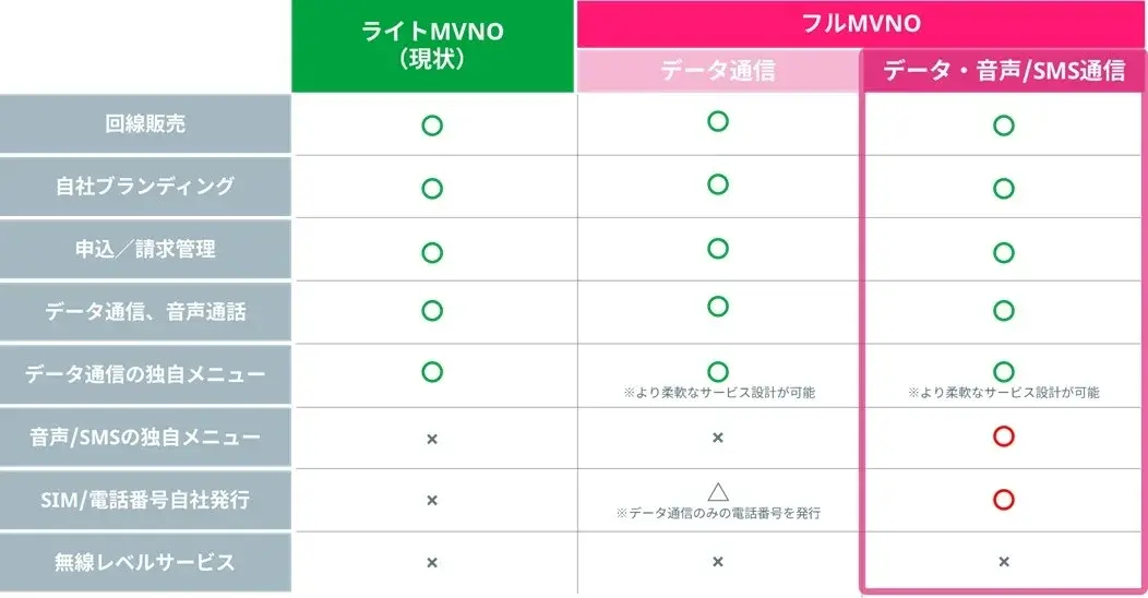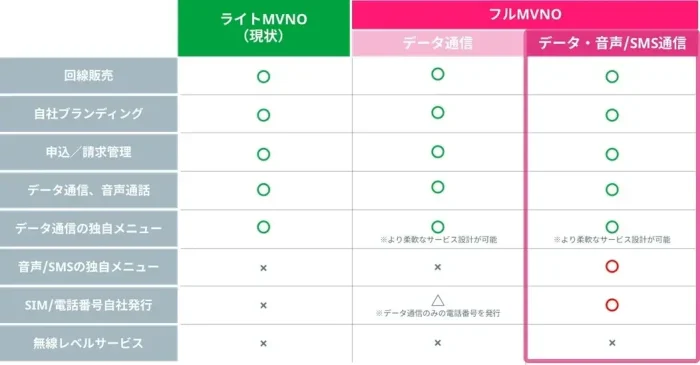 これによりSIMの自社発光や電話番号の管理を行うこととなり、かけ放題などの通話サービスや独自性の高いデータ通信サービスの柔軟な設計、海外ローミングなどの付加価値提供による競争力の強化を目指します。