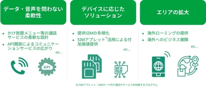 これにより、利用スタイルに応じた通話プランや「かけ放題メニュー」など、顧客ニーズに沿った音声サービスを提供できるようになるとのこと。さらに、eSIMを含む多様なSIMラインアップの展開や、海外ローミングサービス、法人向けIoTを視野に入れた付加価値の高い通信サービスの提供も可能になります。