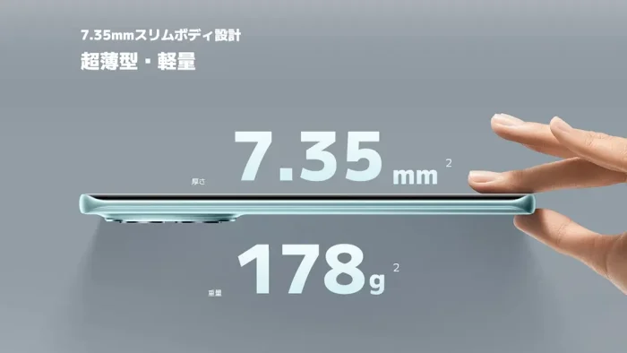 厚さは7.35mmと薄く、重量も178gなので最近のスマホの中ではなかなか軽量です。