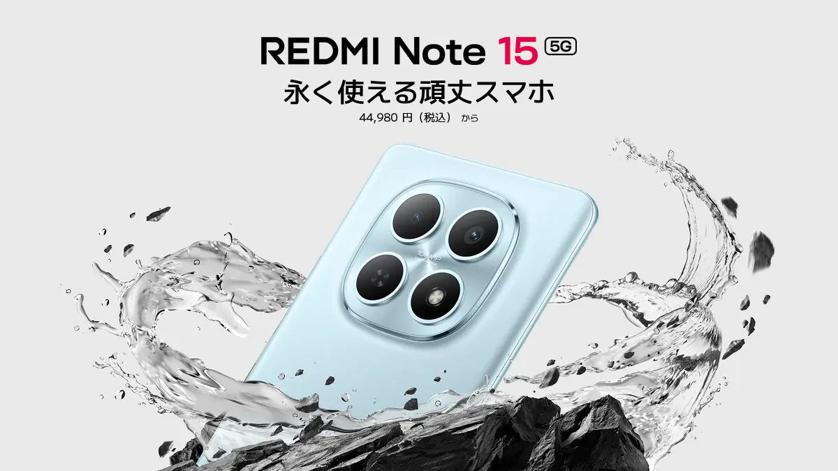 Xiaomi、薄型軽量ながら高耐久な頑丈スマホ「REDMI Note 15 5G」発売!価格は44,980円~