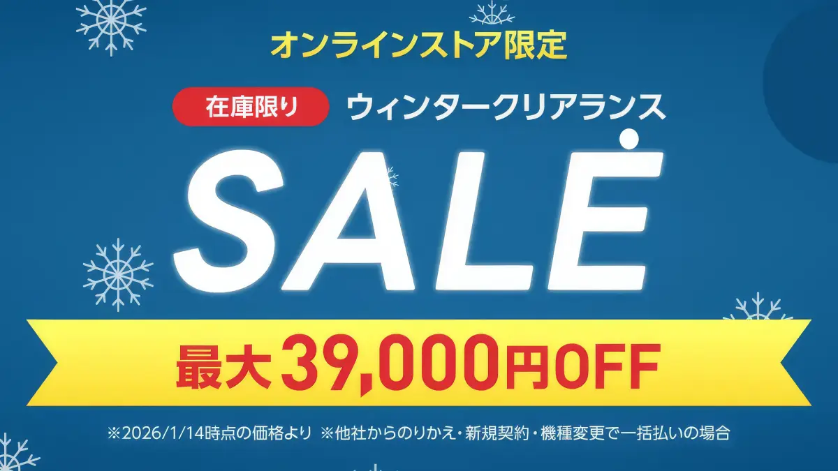 ワイモバイルオンラインストアにて、クリアランスセールが開催されています。新規・他社回線からののりかえ(MNP)だけでなく、機種変更も対象となります。