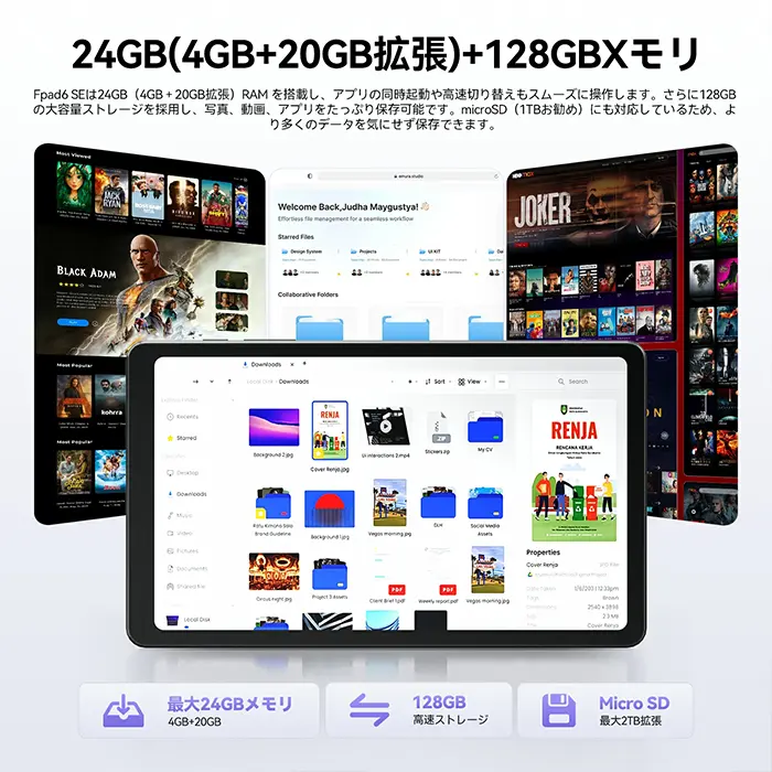 | 外部メモリ | microSDXC (最大2TBまで) | ||||||