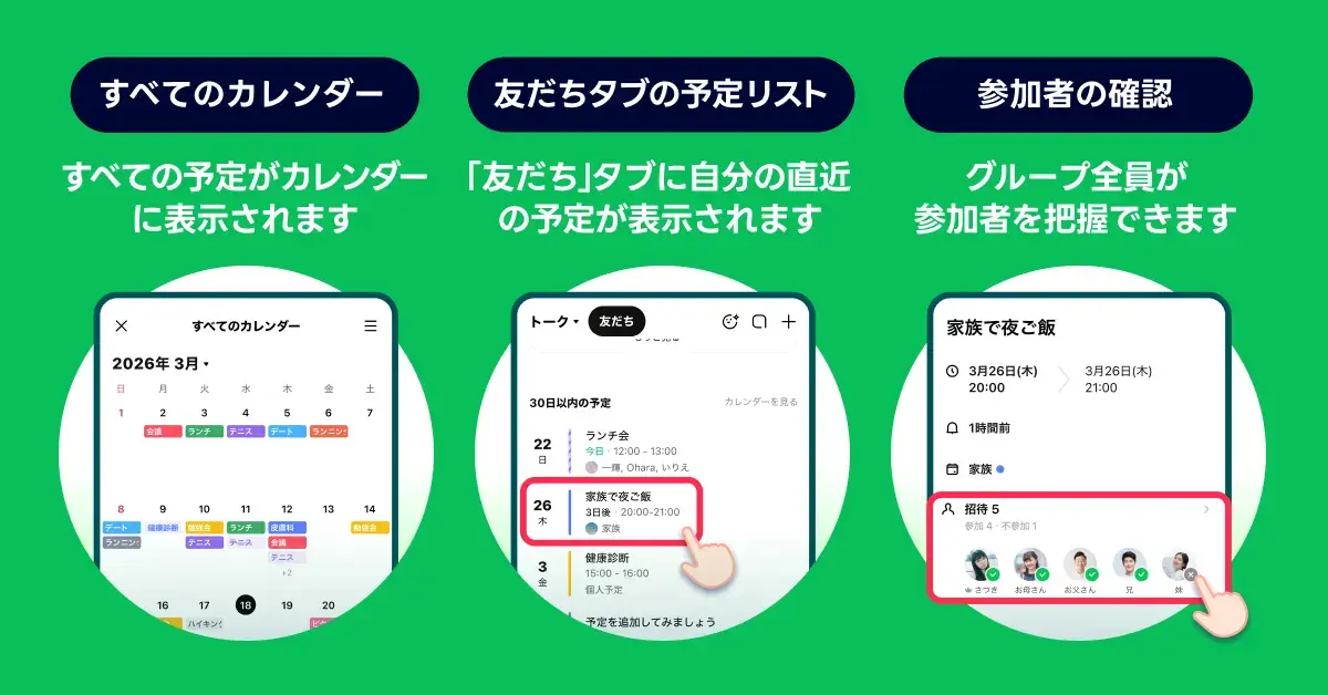 LINEヤフーは、コミュニケーションアプリ『LINE』のトークルーム上で予定の作成から管理、リマインドまで一貫して行える「LINEカレンダー」機能を2026年3月に提供予定と発表しました。