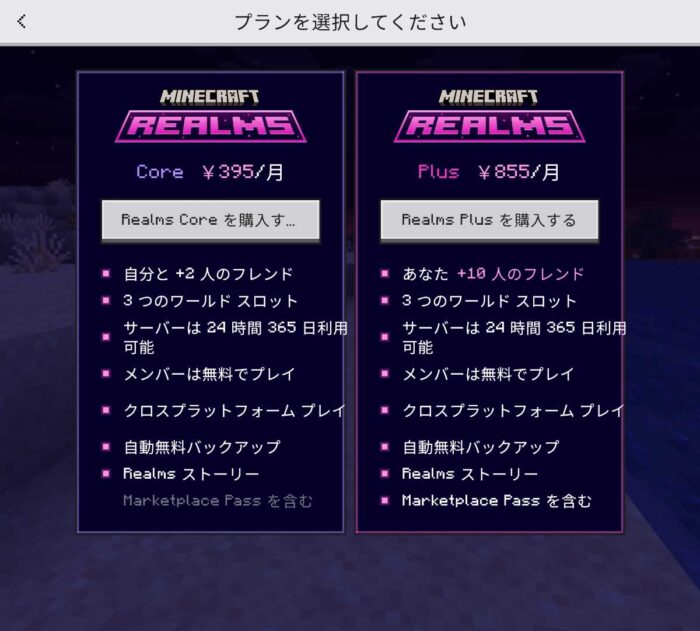 まずは『Minecraft Realms(以下、Realms)』の説明から。既に知っている人は読み飛ばしてもOKです。