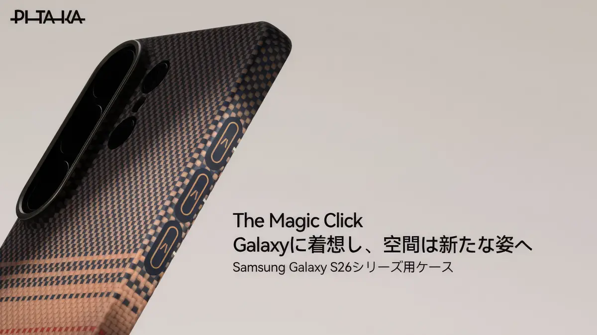 PITAKAは2月26日、サムスンのGalaxy S26シリーズ向けのスマホケースを販売開始しました。航空宇宙グレードのアラミド繊維を採用し、薄型・軽量設計と高い保護性能を両立したケースで、今回は全モデルにPITAKA独自開発のNFCショートカットボタン「Aaron Button(アーロン ボタン)」を搭載します。