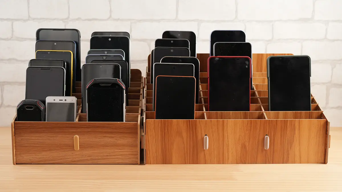 スマホが机に散乱してない?2千円台で買える「スマホ収納ラック」で24台まとめてスッキリ整理