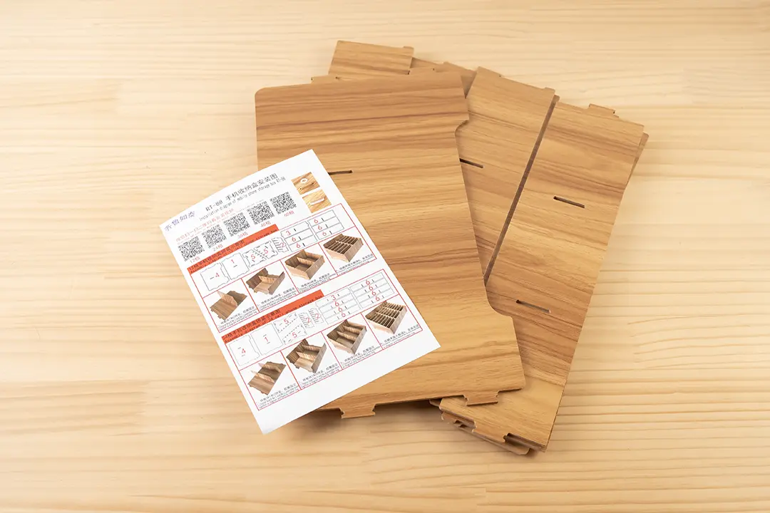 このスマホ収納ラックは完成品ではなく、自分で組み立てるタイプです。一応説明書も入ってましたが、中国語でした。Googleレンズの翻訳で確認するのもいいですが、図(写真)だけでも十分にわかります。