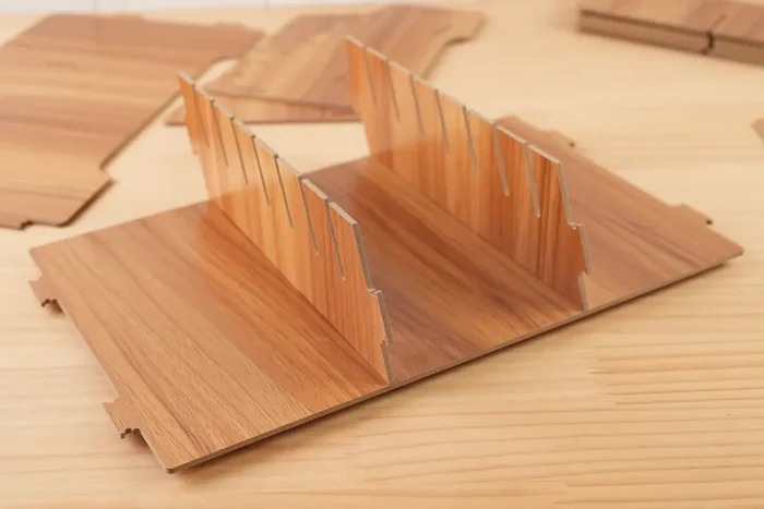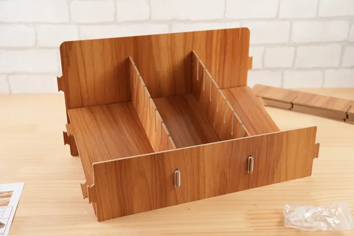 まずは底板に中央の仕切りを2枚はめ込みます。