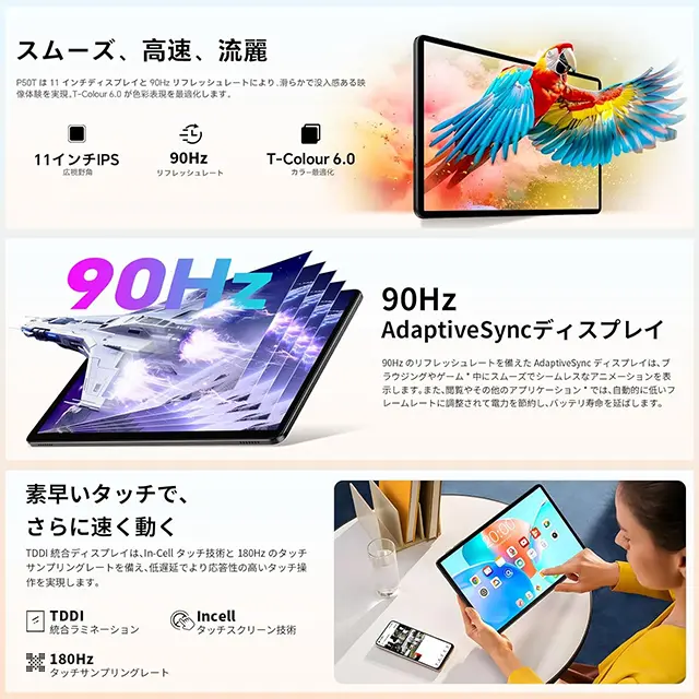| ディスプレイ | 10.92インチ 1280×800 (HD+) リフレッシュレート:90Hz |
