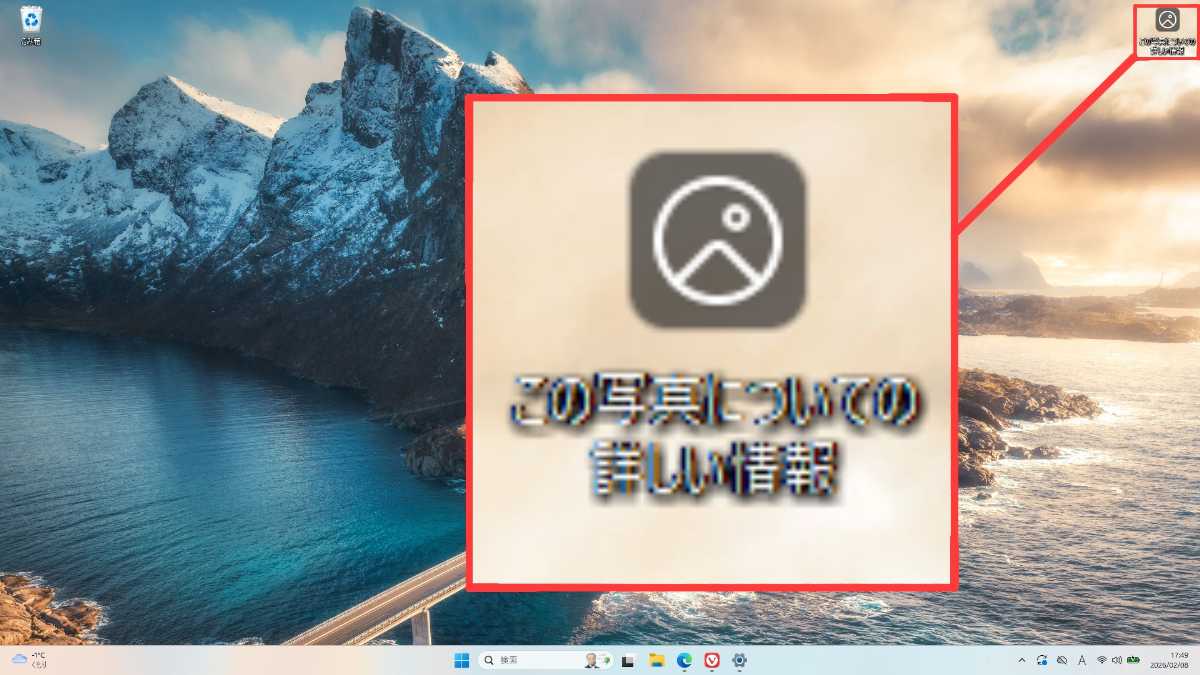 Windows 11のデスクトップ上に「この写真についての詳しい情報」という削除できないアイコンが表示されていませんか?これはWindows 11の壁紙を「Windows スポットライト」に設定すると表示されるものです。