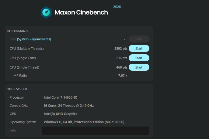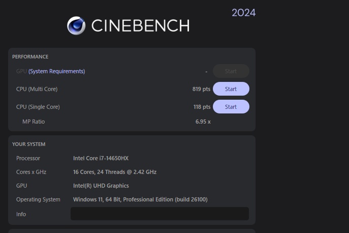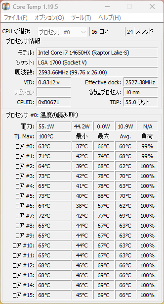 | CPU | Core i7-14650HX (16コア/24スレッド) |