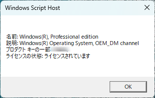 ACEMAGIC M5は、Windows 11 Proを搭載しています。ライセンスは、OEM版(OEM_DM channel)となっていました。