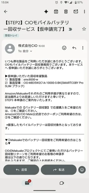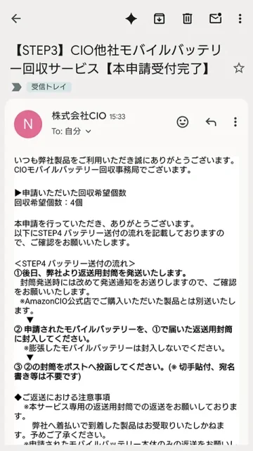 CIO製以外のモバイルバッテリーを回収してもらう手順は以下の通り。