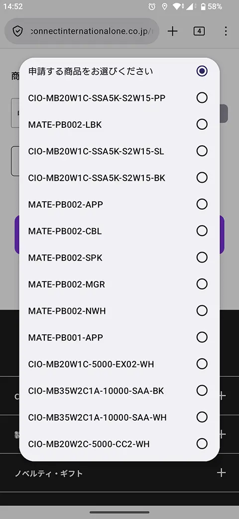 今回はCIO製と他社製の両方が手元にあったため、それぞれ個別に申し込んでみました。