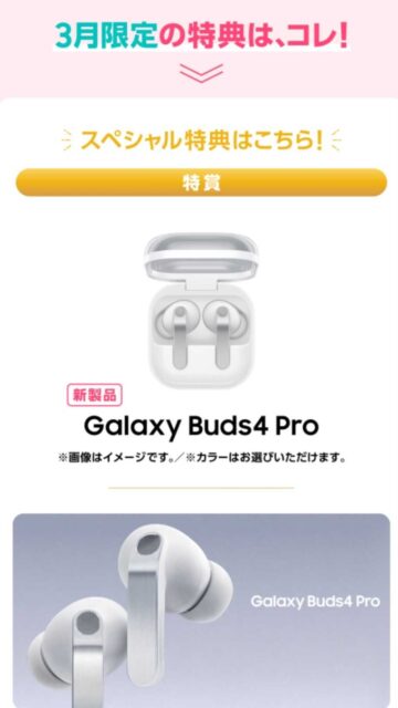 特賞はGalaxy Buds4 Pro!3月のGalaxyスクラッチが開催中!!