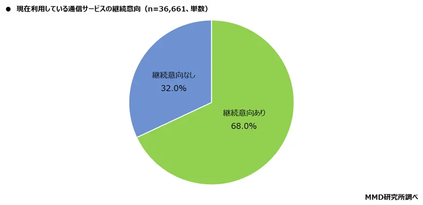 現在利用している通信サービスの継続意向を聞いたところ、「継続意向あり」が68.0%、「継続意向なし」は32.0%となりました。