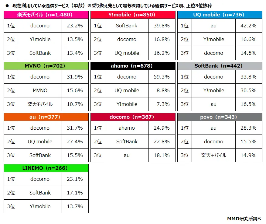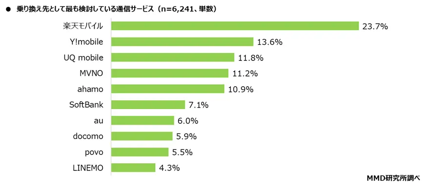 乗り換え先で最も検討されているのは「楽天モバイル」