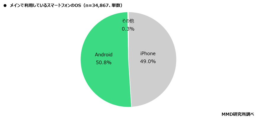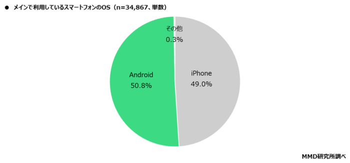 メイン利用のスマホはAndroid 50.8%、iPhone 49.0%