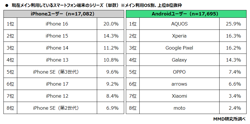 - 【2025年9月】メイン利用のスマホシェア、OSはAndroidが51.4%で端末はAQUOSが25.7%【MMD研究所調査】 – OREFOLDER