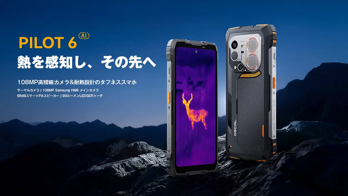 Oscalはタフネススマートフォン「OSCAL PILOT 6」を発売しました。IP68/IP69K防水防塵+MIL-STD-810H耐衝撃に対応し、高解像度のサーマルイメージング機能と1億800万画素のカメラを搭載したミドルレンジモデルです。