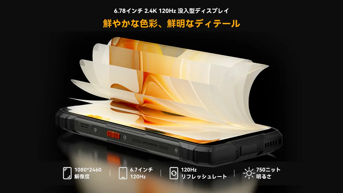 | ディスプレイ | 6.78インチ 720×1604 (HD+) リフレッシュレート:120Hz |