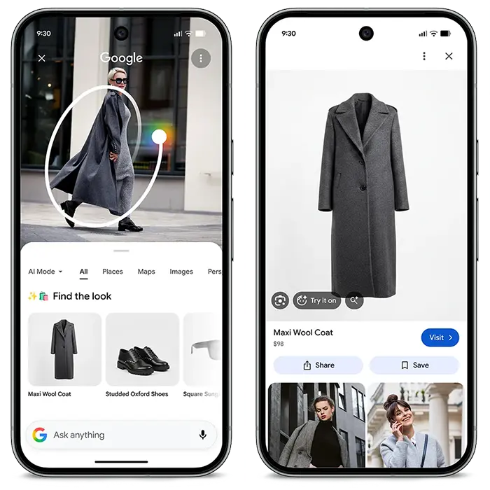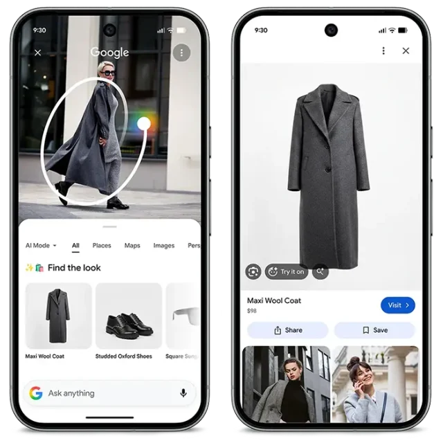 画面上の気になるものを指で囲って検索できる「かこって検索」が、画像内の複数のアイテムを認識できるようになりました。例えば、SNSで素敵なコーディネートを見つけたとき、Pixel 10シリーズなら、かこって検索を使ってそのファッションアイテム一式をまとめて検索できます。