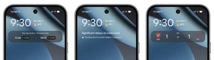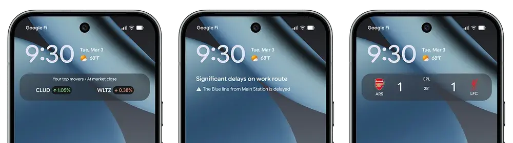 スナップショットが進化し、通勤ルートの運行情報や遅延アラート、最新のスポーツ結果、最新マーケットトレンドなど、より多くの情報をホーム画面で表示できるようになりました。Pixel 7以降のスマートフォンで利用できます。