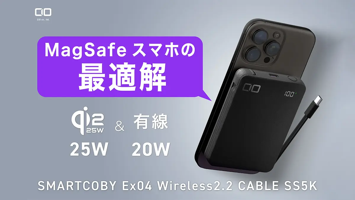 CIOは3月27日、Qi2.2ワイヤレス充電と脱着式USB-Cケーブルを搭載した5000mAhモバイルバッテリー「SMARTCOBY Ex04 Wireless2.2 CABLE SS5K」の予約販売を開始しました。