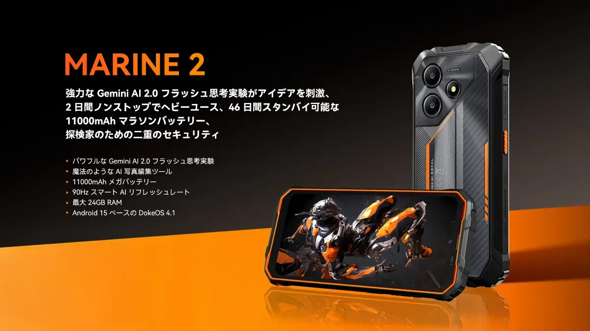 Blackview OSCAL MARINE 2は、11000mAhの大容量バッテリーを搭載した4G対応のタフネススマートフォンです。OSにはAndroid 15を採用し、6.56インチのHDプラスディスプレイは90Hzのリフレッシュレートに対応しています。プロセッサにはUnisoc T615を搭載し、8GBのメモリと256GBのストレージを内蔵することで、日常的な利用に十分な性能を確保しました。厚さ18.3mm、重量395gと重厚な筐体ですが、長時間のバッテリー駆動とNFCなどの実用的な機能を重視するユーザーに適したエントリーモデルの一台です。