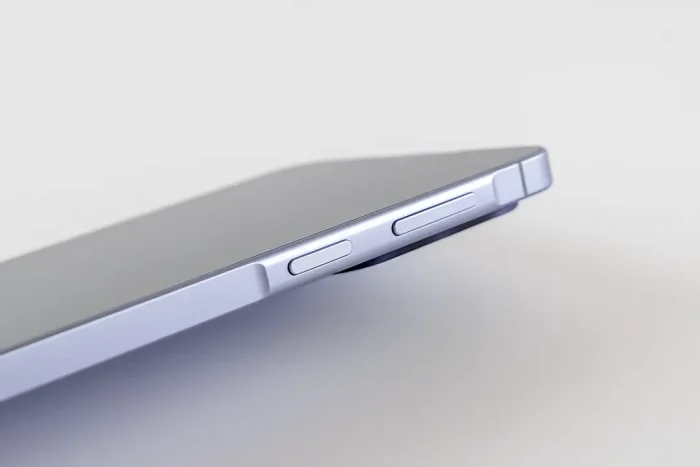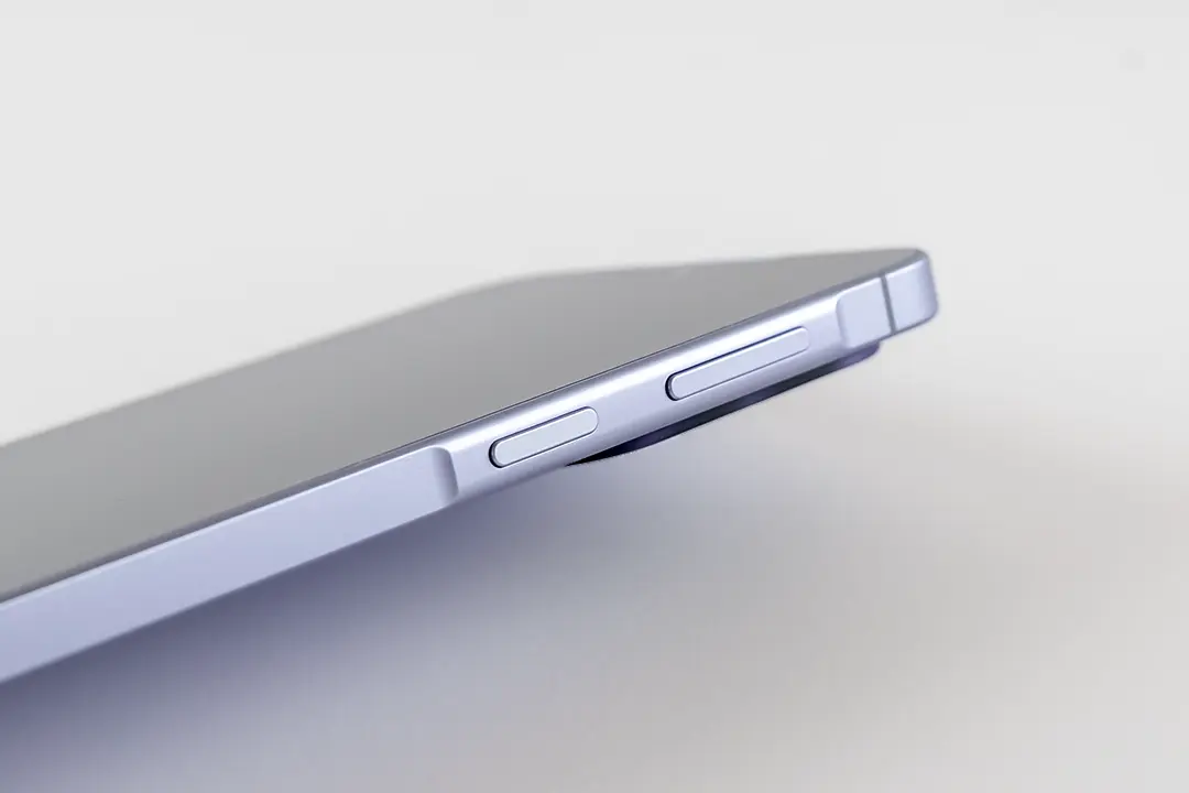 音量ボタンと電源ボタンのある部分だけ、側面の他の部分よりも盛り上がってるのが、ちょっと面白いデザインだと思いました。また、側面の角は若干丸くなっているのか、思ったよりも角が手に突き刺さりません。