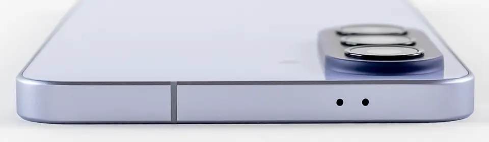 上側面はマイク穴。下側面にスピーカーとUSBポート、SIMスロットがあります。