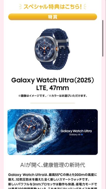 特賞はGalaxy Watch Ultra LTE 47mm!大当たりはGalaxy Buds4!
