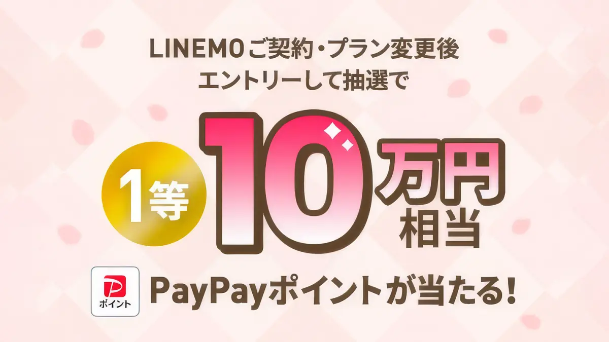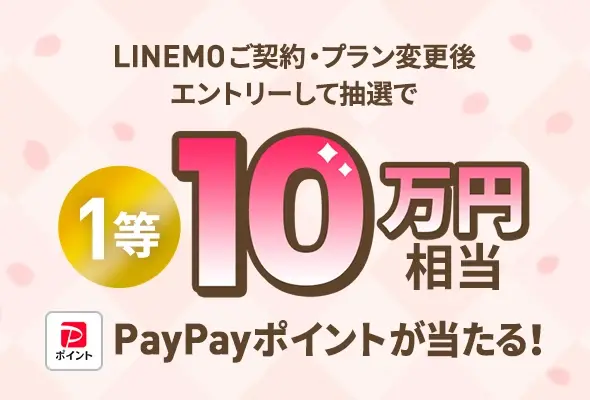 ソフトバンクのLINEMOにて、最大10万円相当のPayPayポイントが当たる抽選キャンペーンが開始されました。